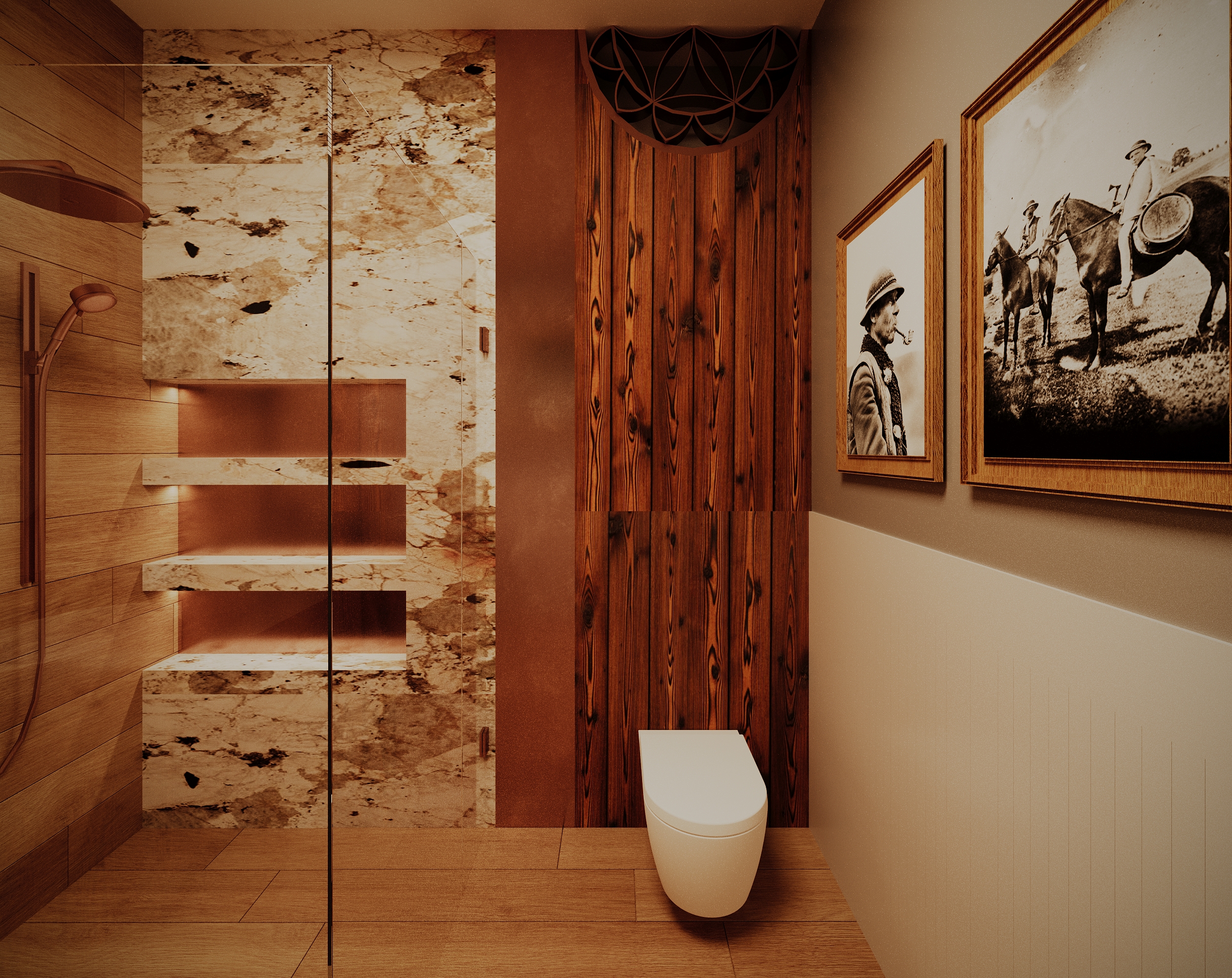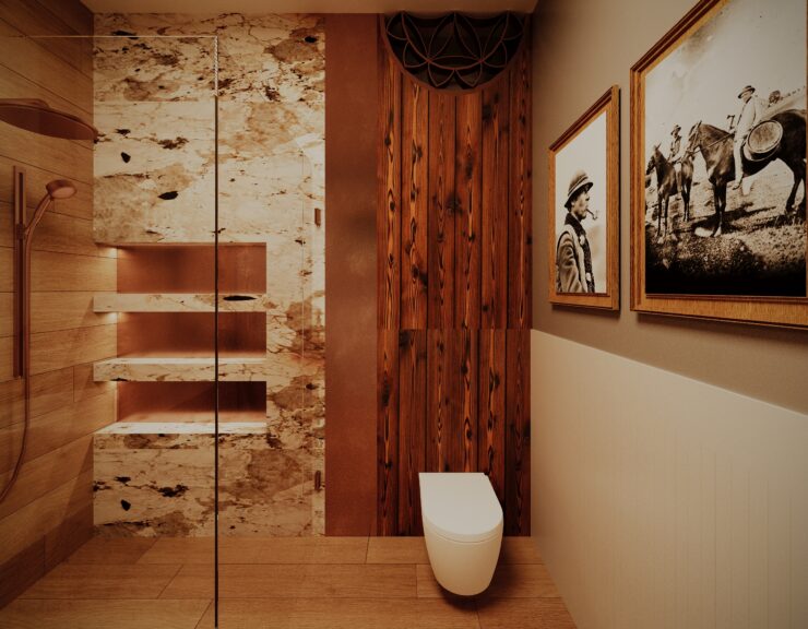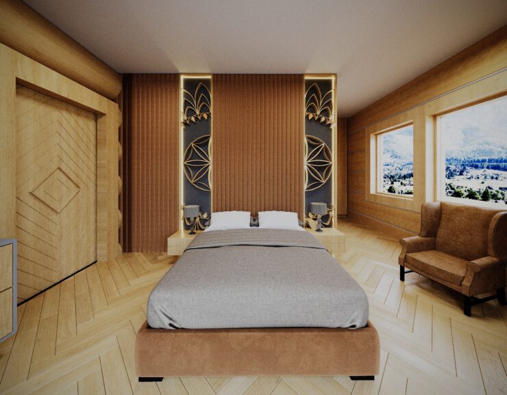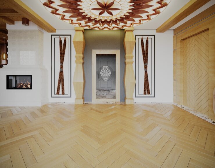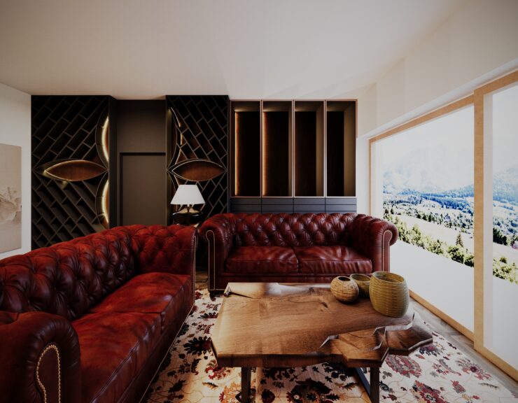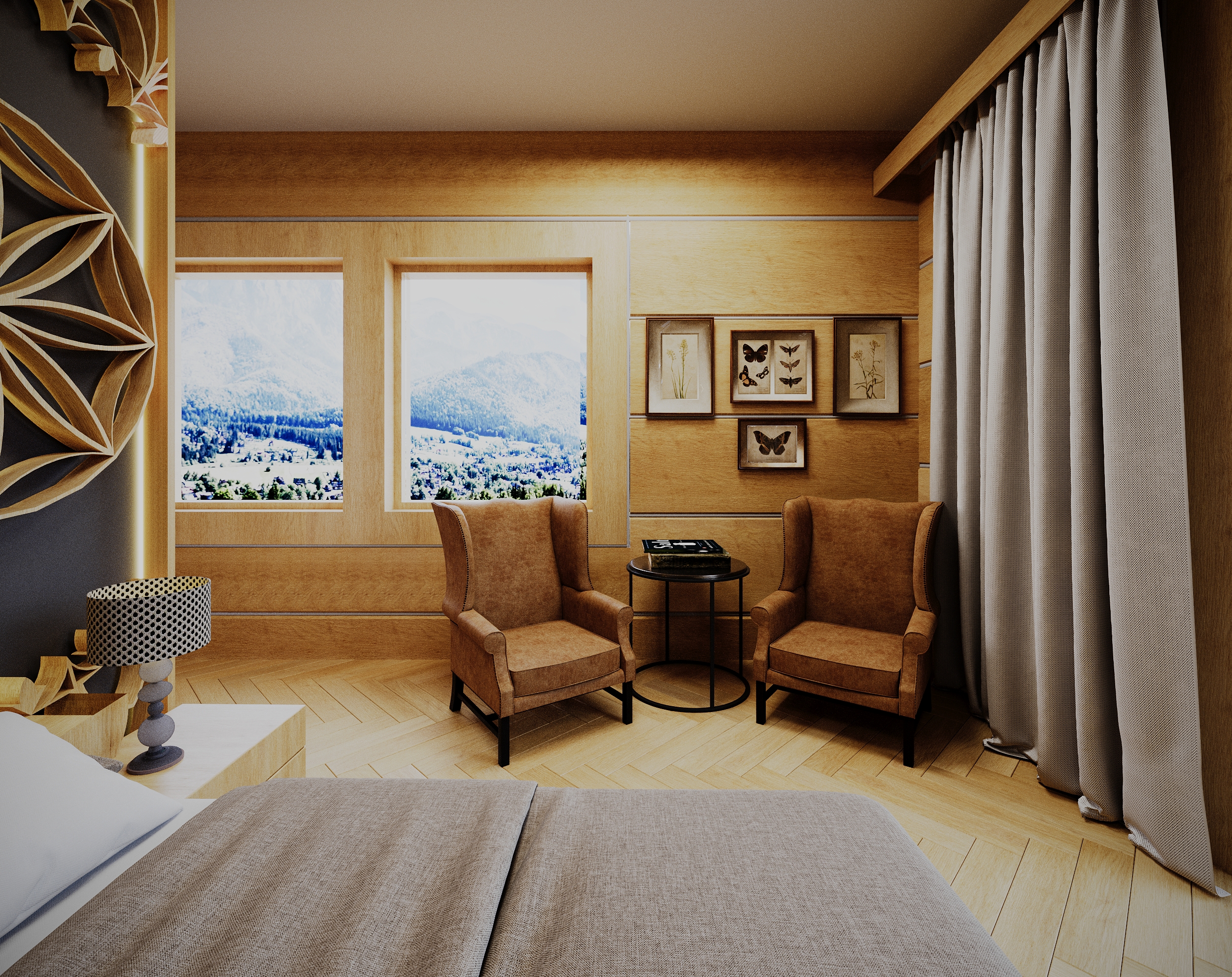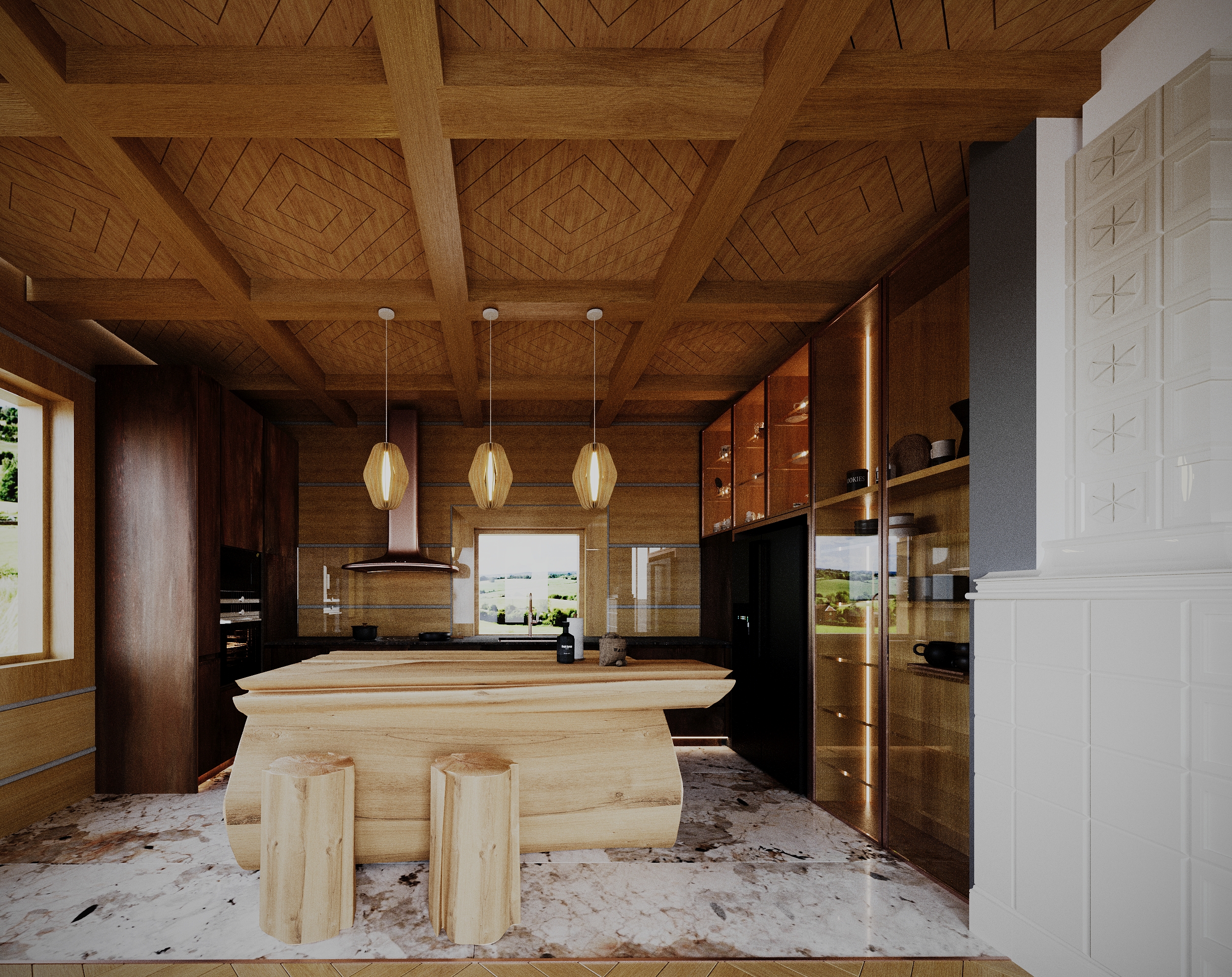 Trzykondygnacyjna bryła obejmuje przyziemie, parter i piętro, a sercem każdej z kondygnacji jest kominek – kamienny w przyziemiu oraz kaflowy na parterze. Detale w postaci drewnianej rozety na suficie i góralskich akcentów nadają wnętrzom autentycznego charakteru, podczas gdy łazienki wykończono eleganckimi włoskimi spiekami.