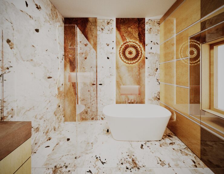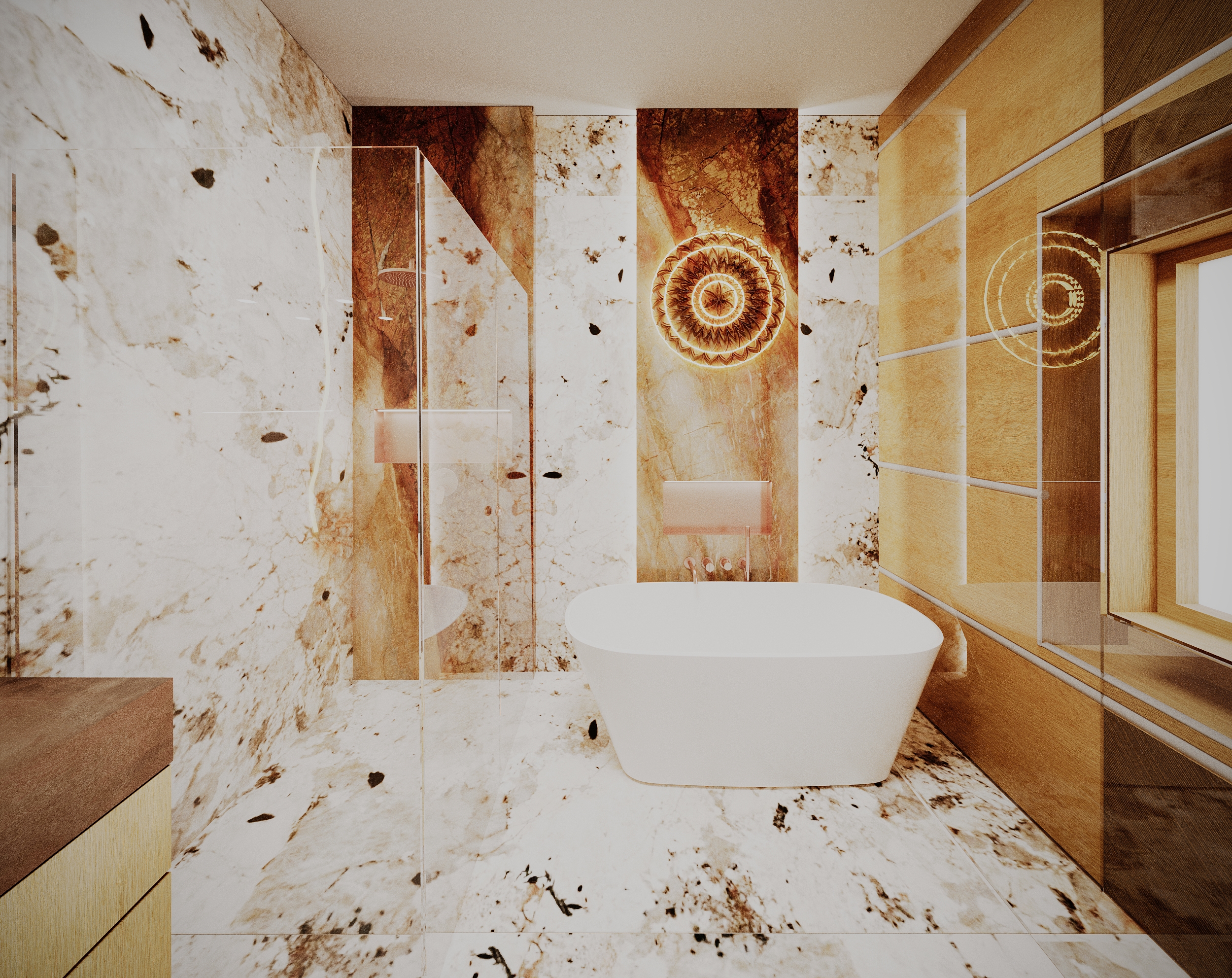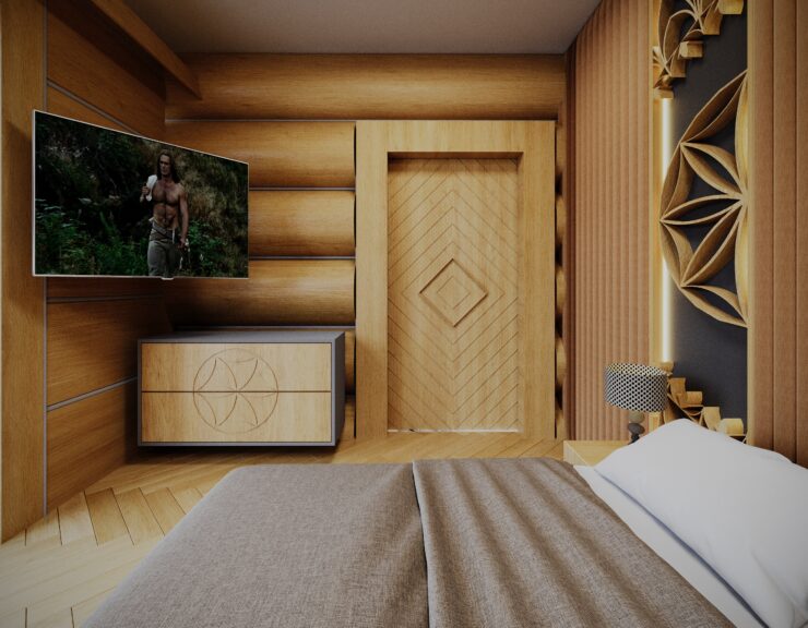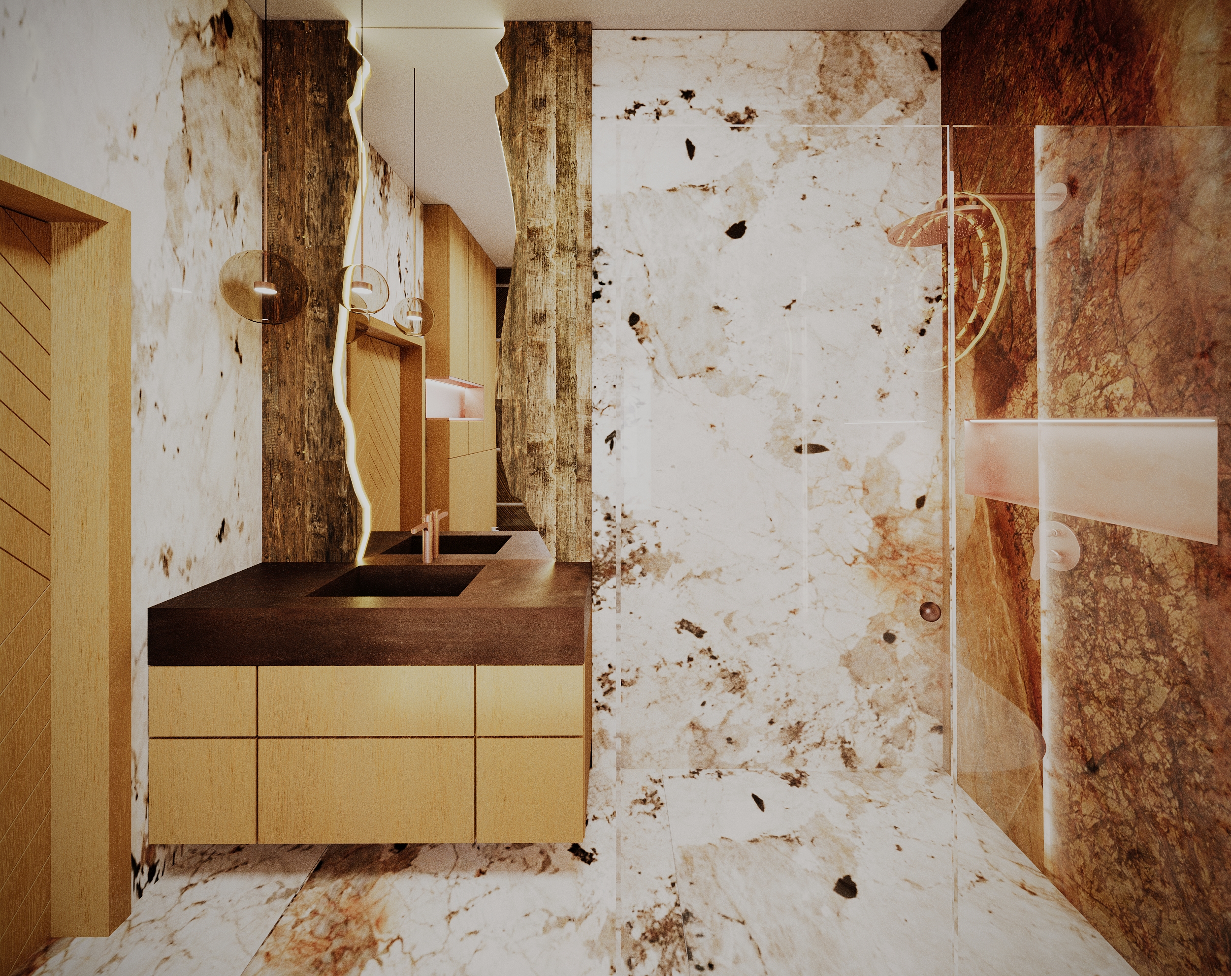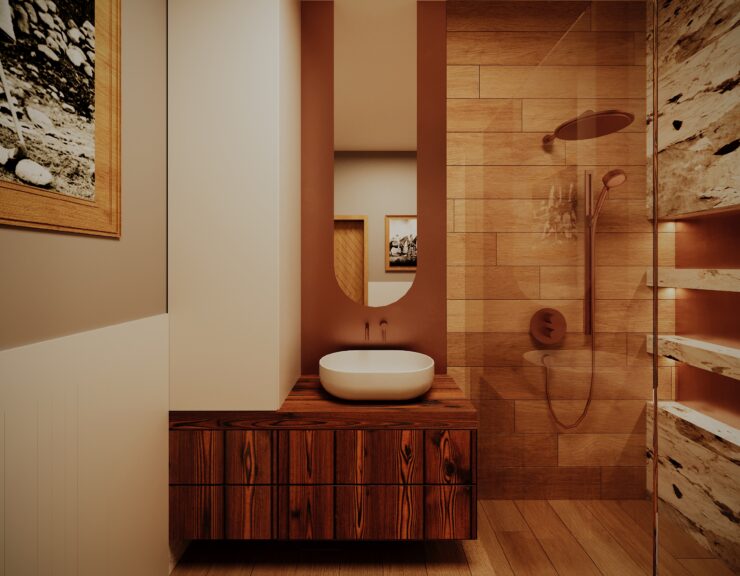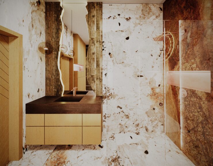 Trzykondygnacyjna bryła obejmuje przyziemie, parter i piętro, a sercem każdej z kondygnacji jest kominek – kamienny w przyziemiu oraz kaflowy na parterze. Detale w postaci drewnianej rozety na suficie i góralskich akcentów nadają wnętrzom autentycznego charakteru, podczas gdy łazienki wykończono eleganckimi włoskimi spiekami.