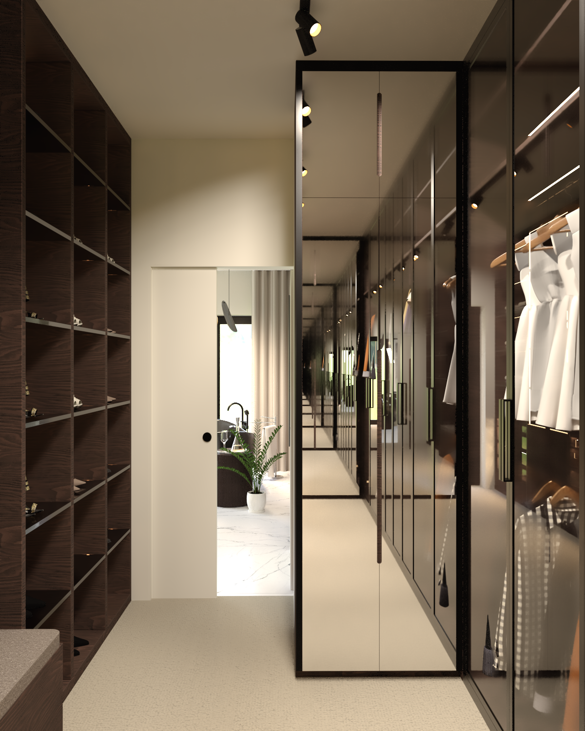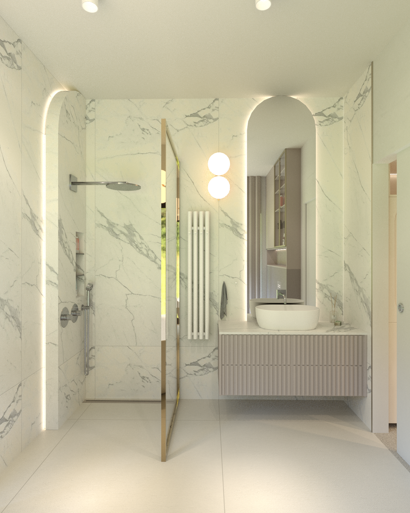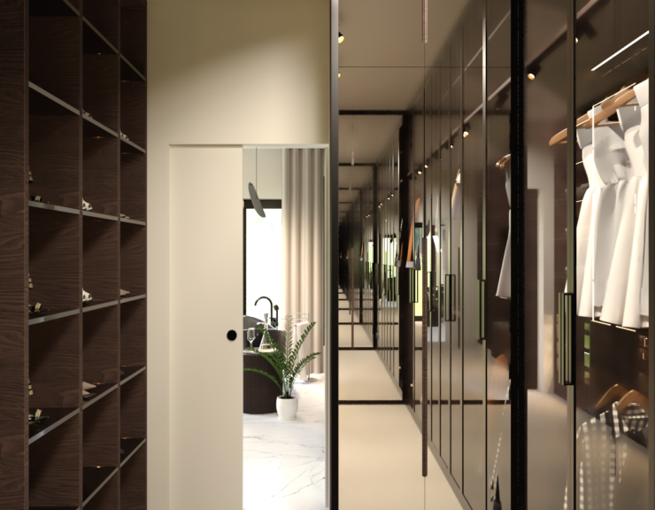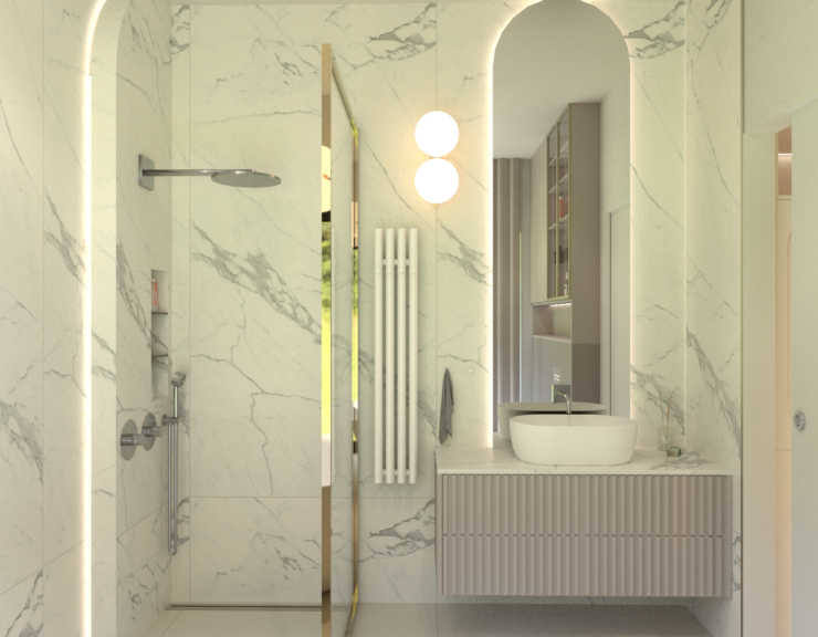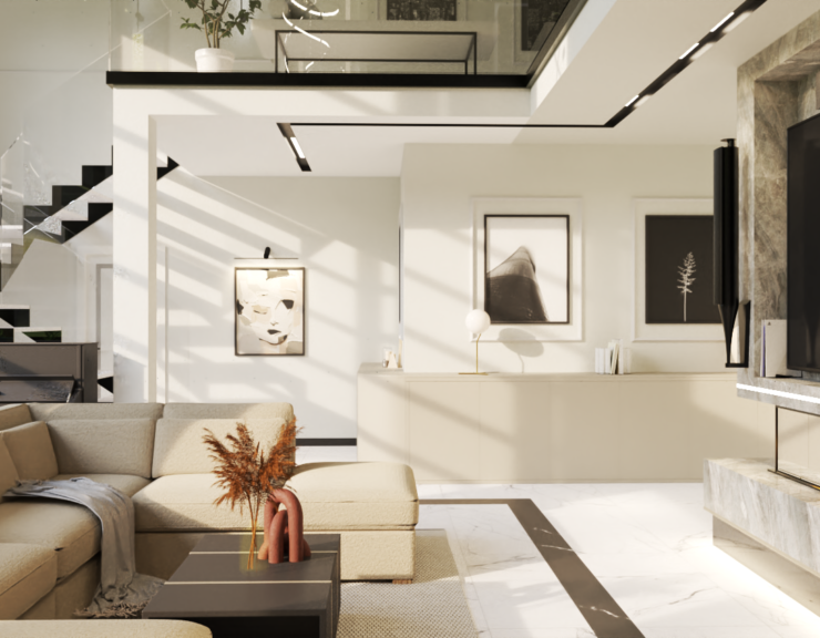 Monochromatyczny apartament o powierzchni 100m2 to elegancka przestrzeń dla 2 osób. Parter z niewielkim salonem i przestrzenią dla jadalni oraz otwartą kuchnią ozdobiony jest piękną podłogą z włoską glazurą. Na tym samym poziomie mieści się mała łazienka z elementami glamour oraz męski gabinet. Piętro to prywatna przestrzeń uwzględniająca sypialnię master z przestronną garderobą i łazienką. … Continue reading Piętrowy apartament na warszawskiej Woli